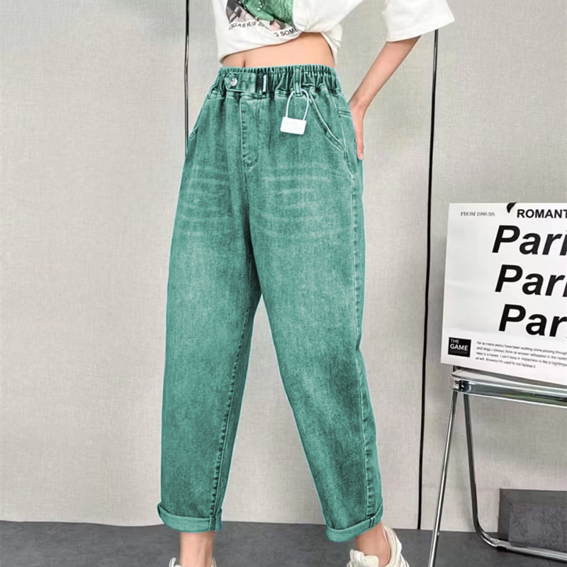 4分鐘前牛仔褲男女款高腰大碼鬆緊腰哈倫褲 - 【單件嘗鮮】僅需 NT$ 960
