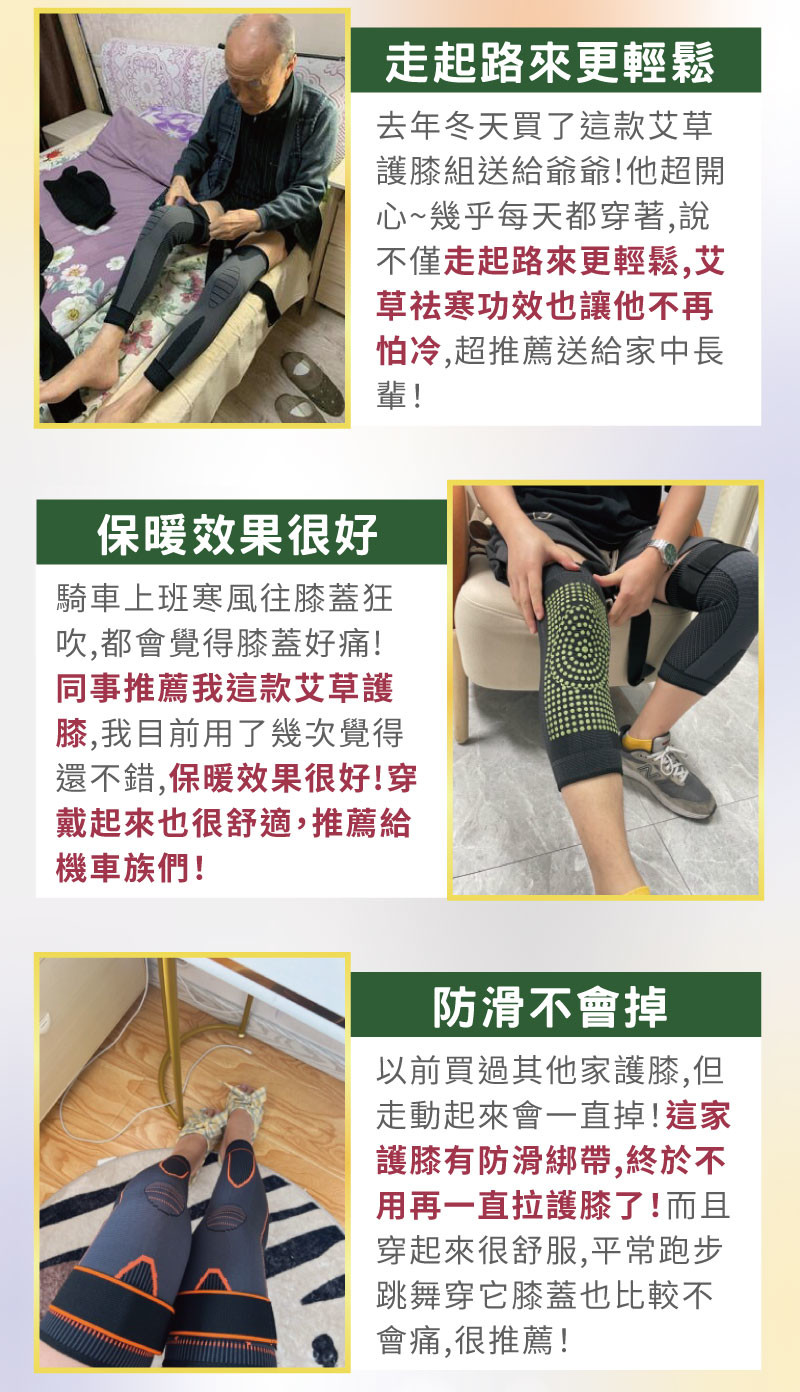 半小時前爆款艾草護膝 真正加倍保暖護膝,四季通用,老寒腿、關節涼、膝部不適專用! - 買1送1雙 NT$998 日本第一套會發熱的護膝(降低99%關節疼痛感)