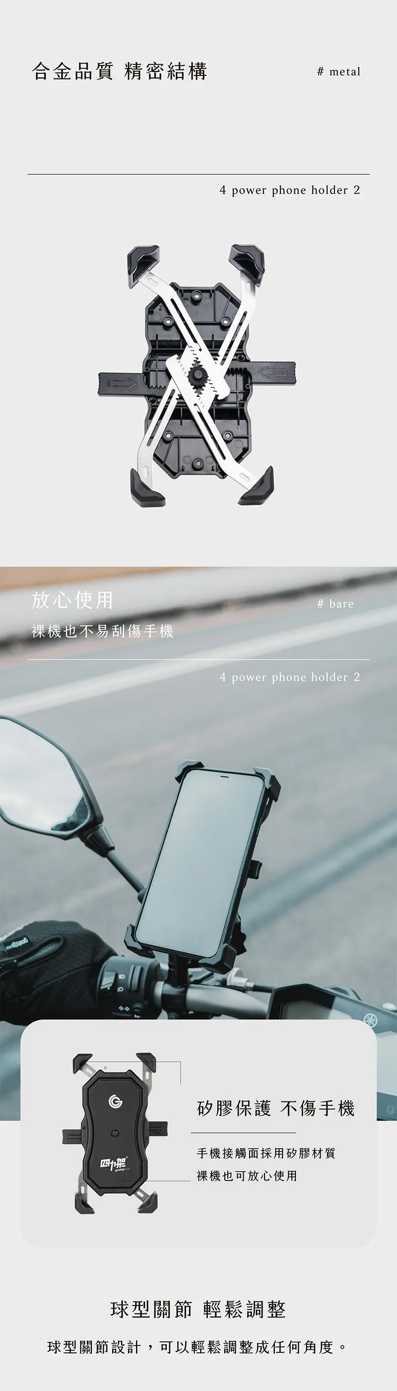 20分鐘前GC 四力架2 / 2s 單手操作 快人一步 最新四力架2 Pro 自動夾緊 USB充電 無線充電兩用機車手機架 外送必備 接單神器 - 四力架2s(通用快充版)一入組NT$1,080