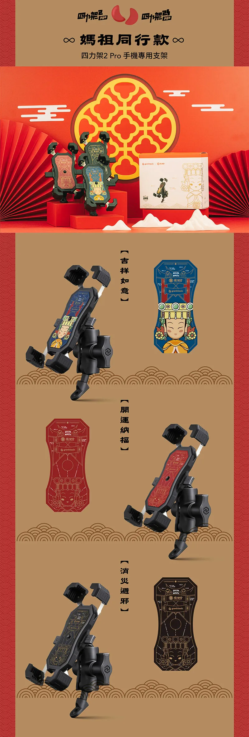 4分鐘前GC 四力架2 / 2s 單手操作 快人一步 最新四力架2 Pro 自動夾緊 USB充電 無線充電兩用機車手機架 外送必備 接單神器 - 媽祖款-紅色 2s Pro(快充版)一入組NT$1,180